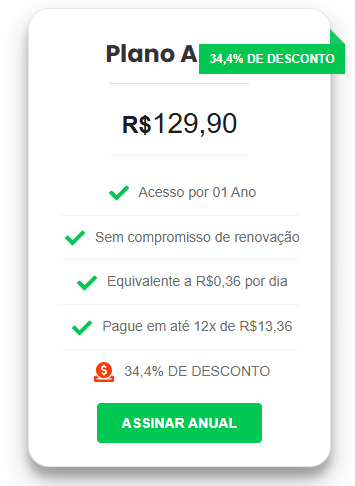 Estude no seu ritmo com acesso vitalício ao conteúdo do curso.